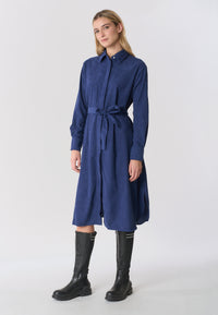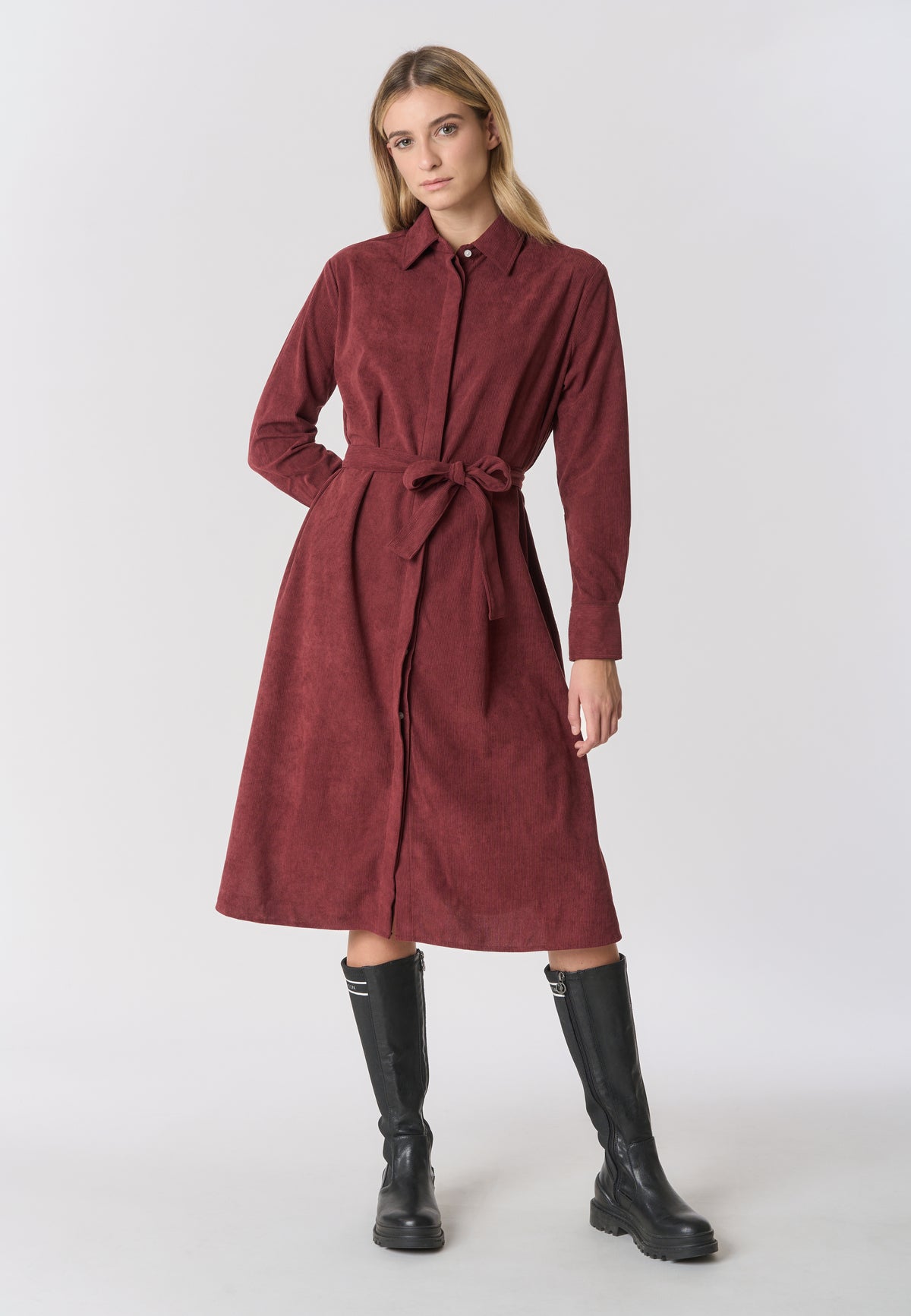 Abito midi chemisier in velluto con cintura